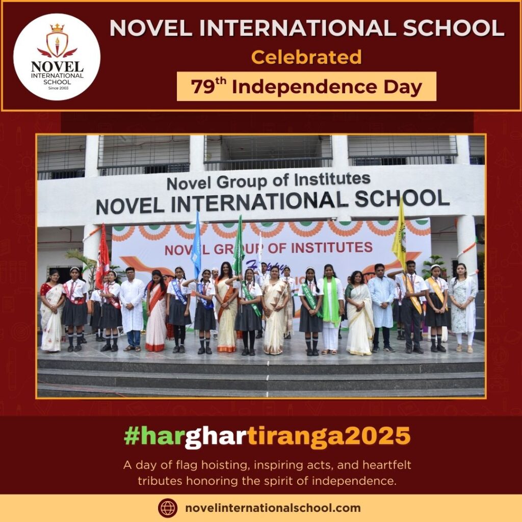 Novel International School in Chinchwad celebrated India’s 77th Independence Day with patriotic fervor. The event included flag hoisting, patriotic songs, and a speech by Founder President Mr. Amit Gorkhe emphasizing the sacrifices of freedom fighters. Students expressed gratitude and the importance of being responsible citizens, culminating in a patriotic song.